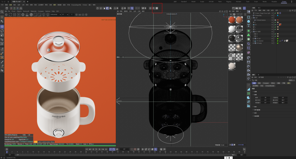在C4D工程“图像查看器窗口”渲染完成后,点击已安装的插件图标,一键拾取合成:背景图层文件+多个蒙版文件一键合成,导入到Photoshop插件。