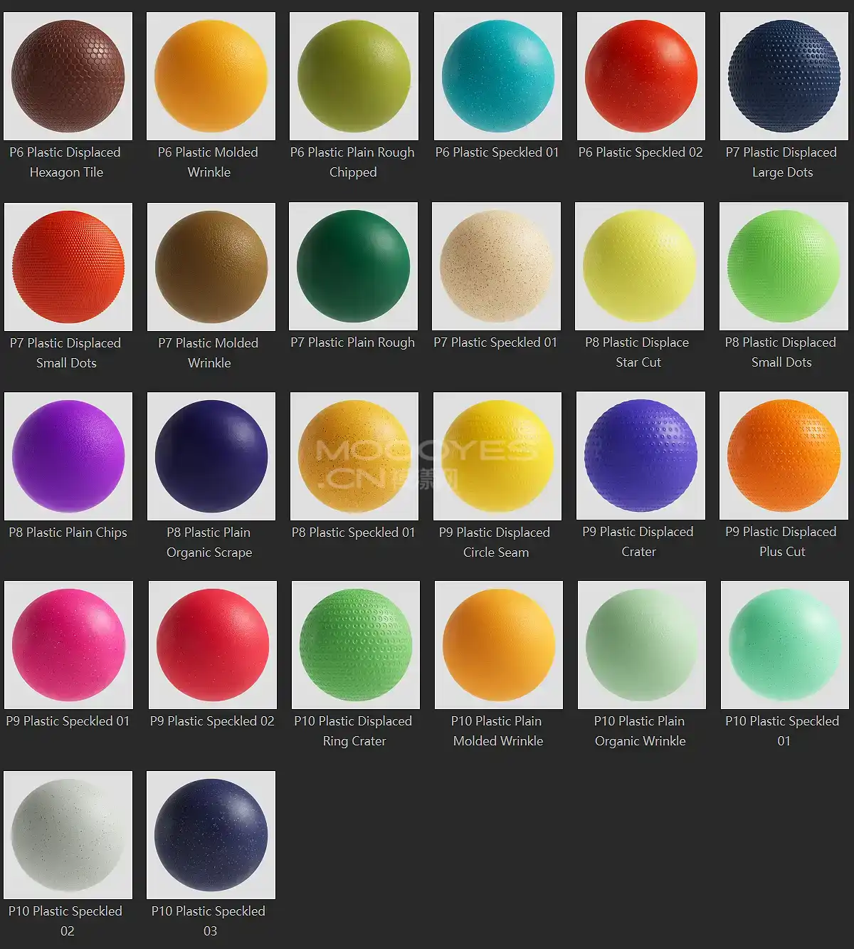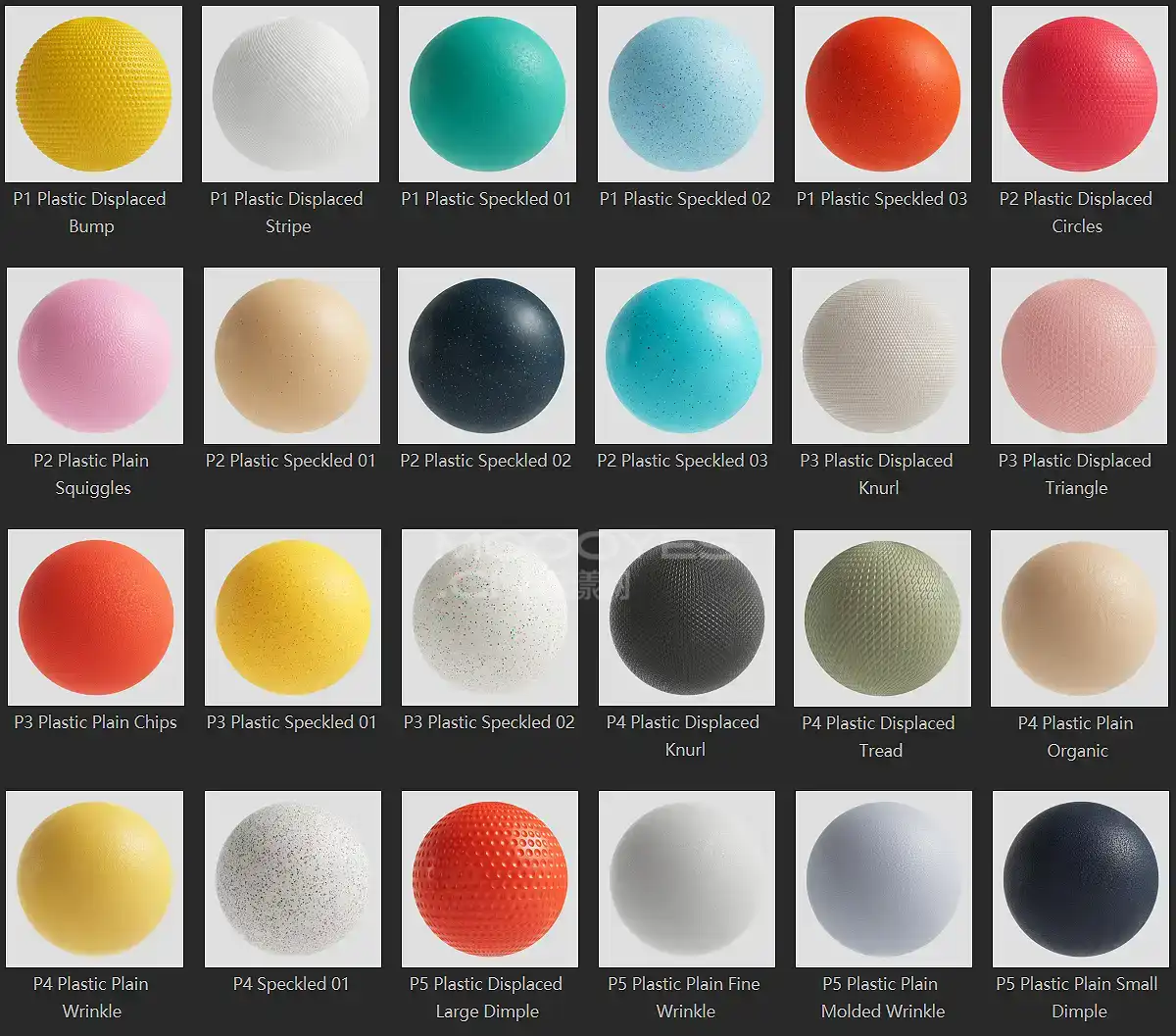 模漾网-50P-灰猩猩GSG彩色塑料纹理贴图预设-Material Colorful plastic