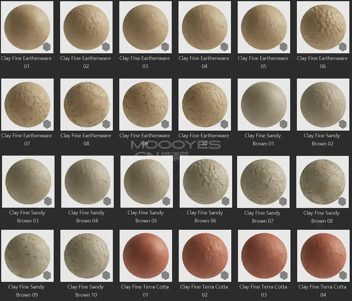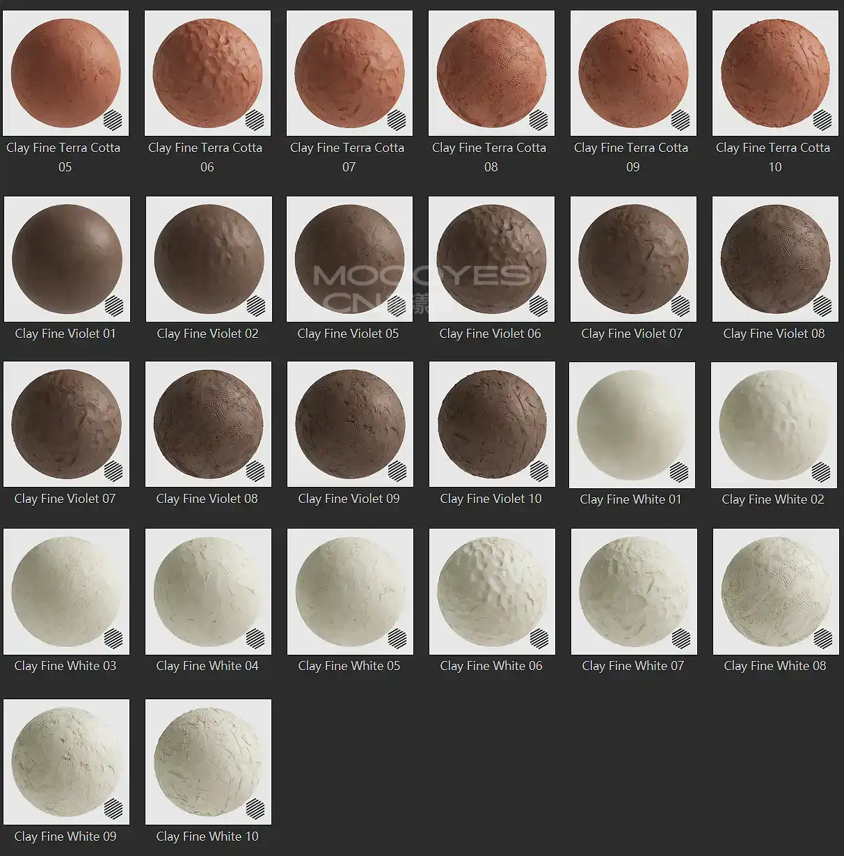 模漾网-50P-灰猩猩GSG泥塑泥巴纹理贴图预设-Material Clay Sculpting