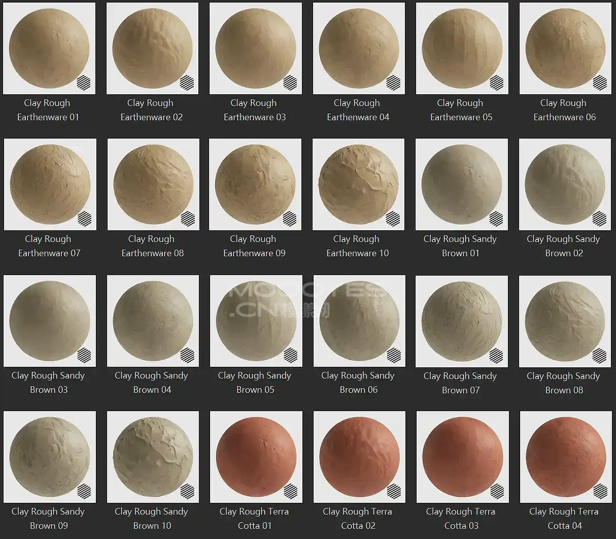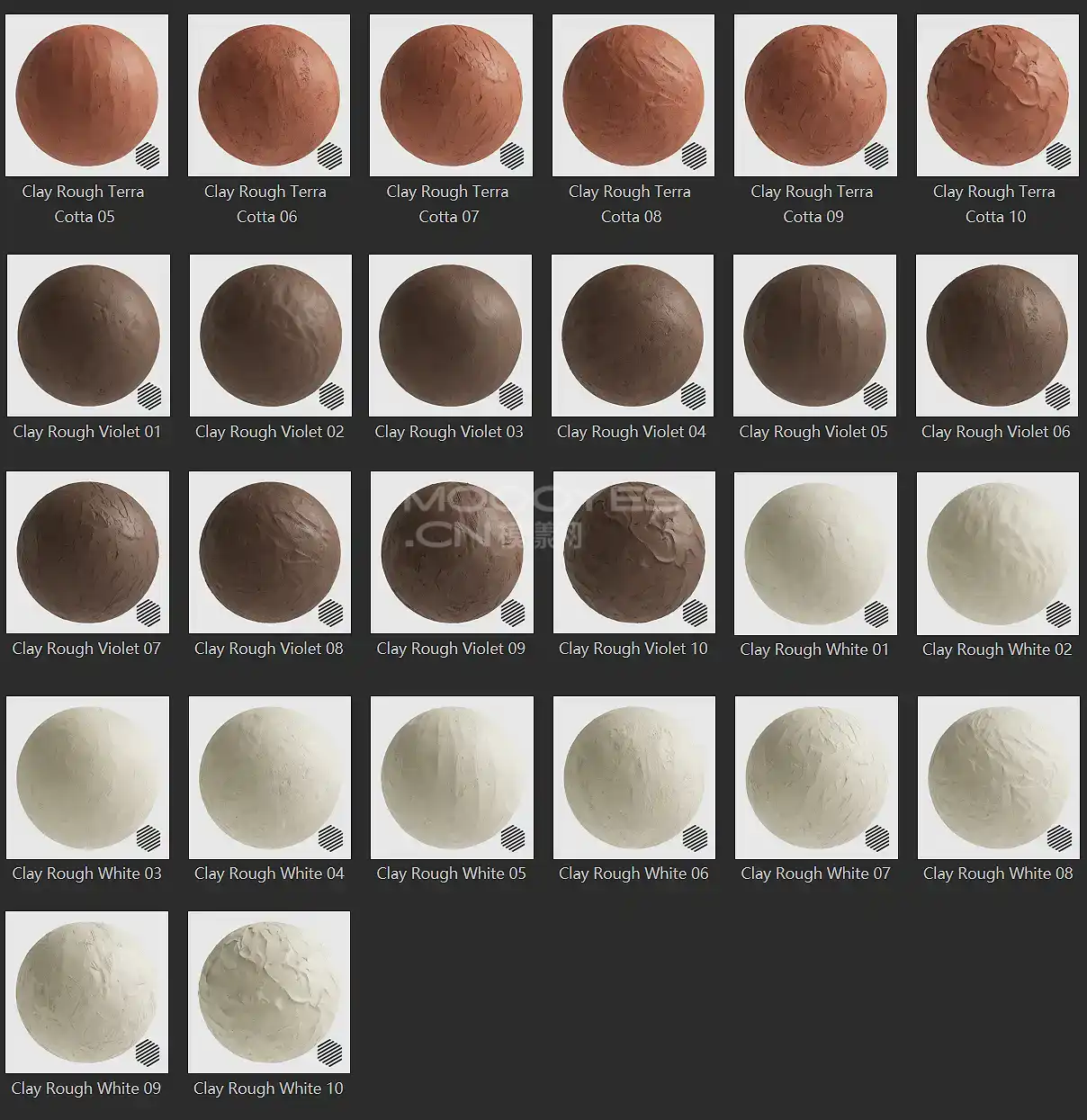 模漾网-50P-灰猩猩GSG粗糙粘土纹理贴图预设Material Clay Rough
