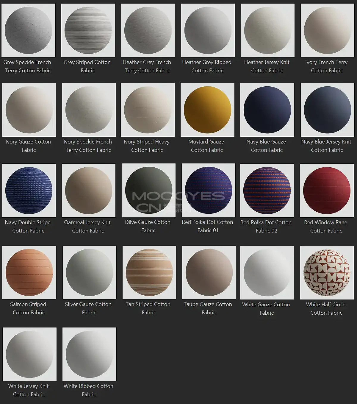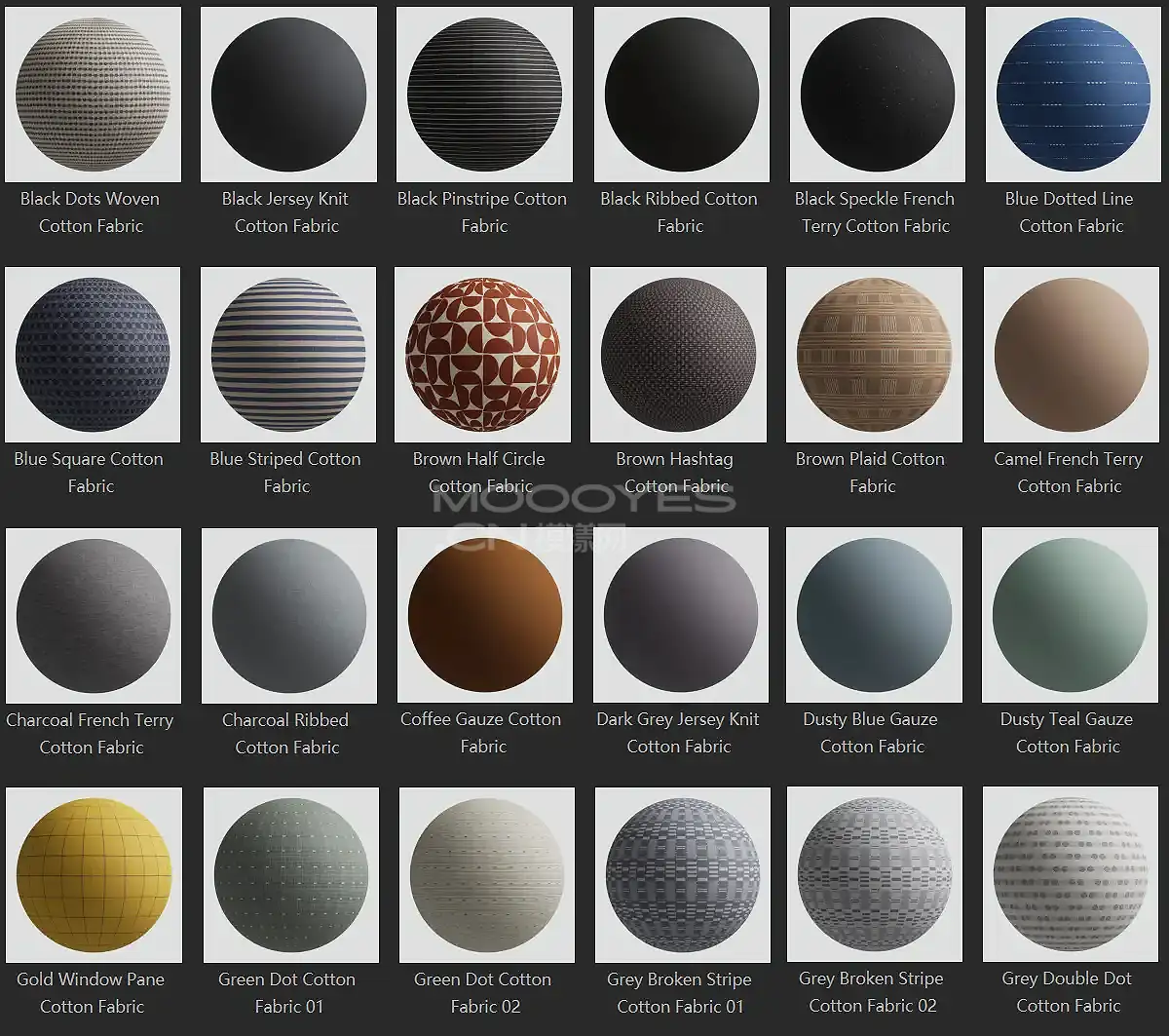 模漾网-50P-灰猩猩GSG棉质布料棉面料纹理贴图预设-Cotton Fabric