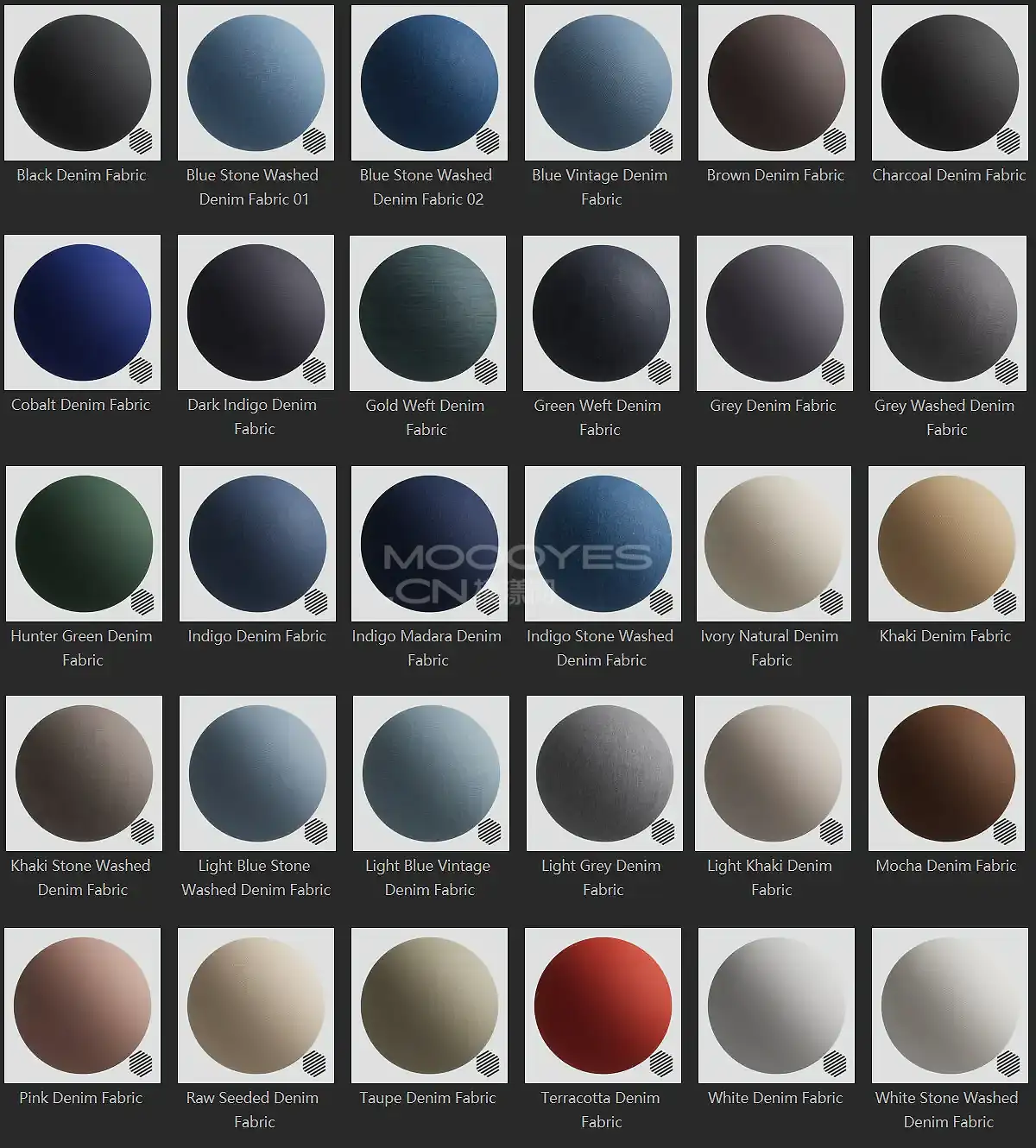模漾网-30P-灰猩猩GSG牛仔布料纹理贴图预设-Material Denim Fabric