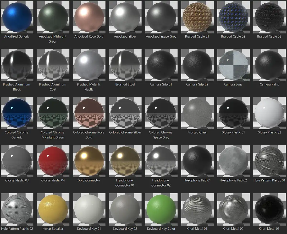 模漾网-50P-灰猩猩GSG高科技产品金属塑料纹理贴图预设-Material Tech Products