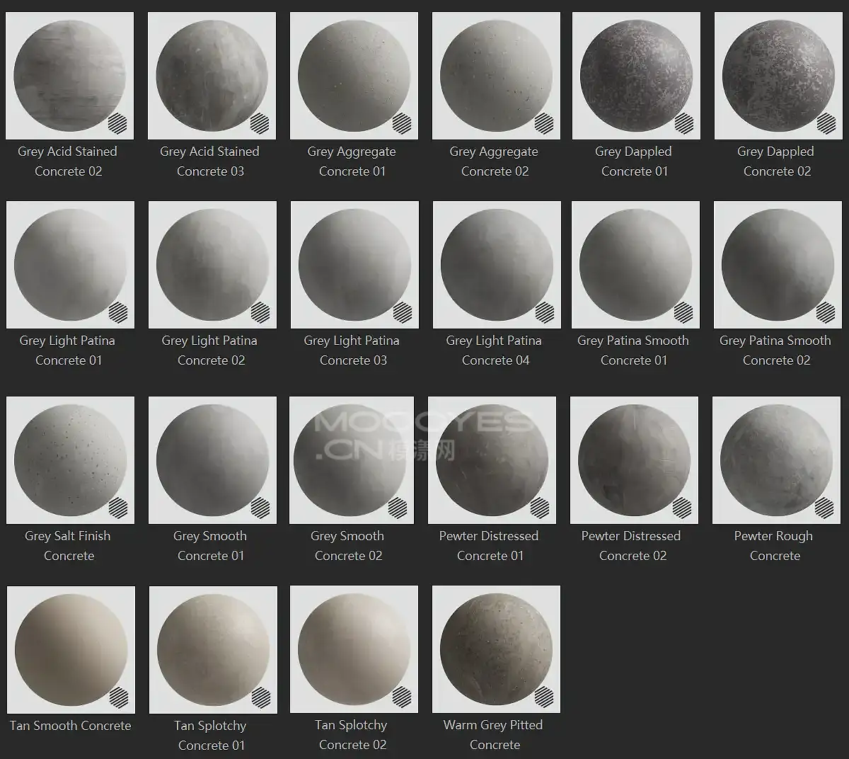 模漾网-40P-灰猩猩GSG混凝土贴图预设-Material Concrete