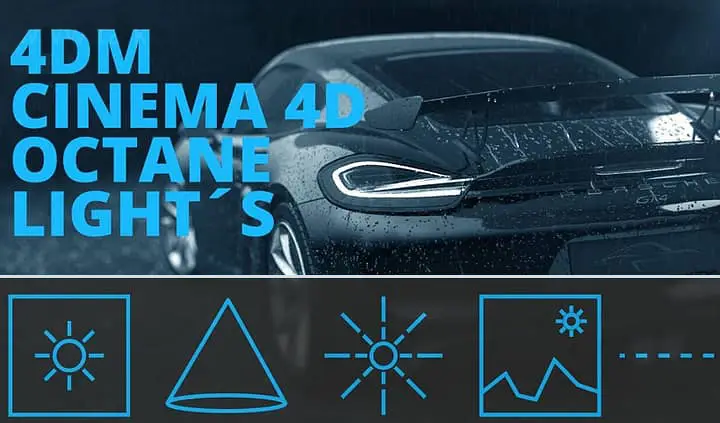 Maxon Cinema 4D Octane Lights with Area/Shape, Spotlight, Sun, HDRI and Seamlessfloor Setup.