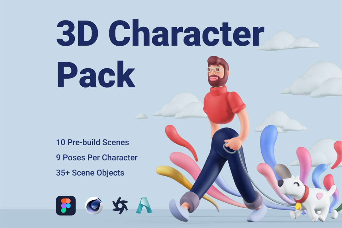 主要风格:3D卡通质感,色彩明亮,造型圆润可爱。IP卡通人物、卡通人物模型、卡通角色模型、带骨骼绑定模型、卡通小狗模型、包含C4D+Octane格式和C4D+Arnold格式,直接可渲染。