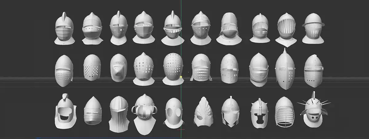 模漾网-30P-中世纪欧洲士兵防御头盔-Warrior Helmet Base Mesh