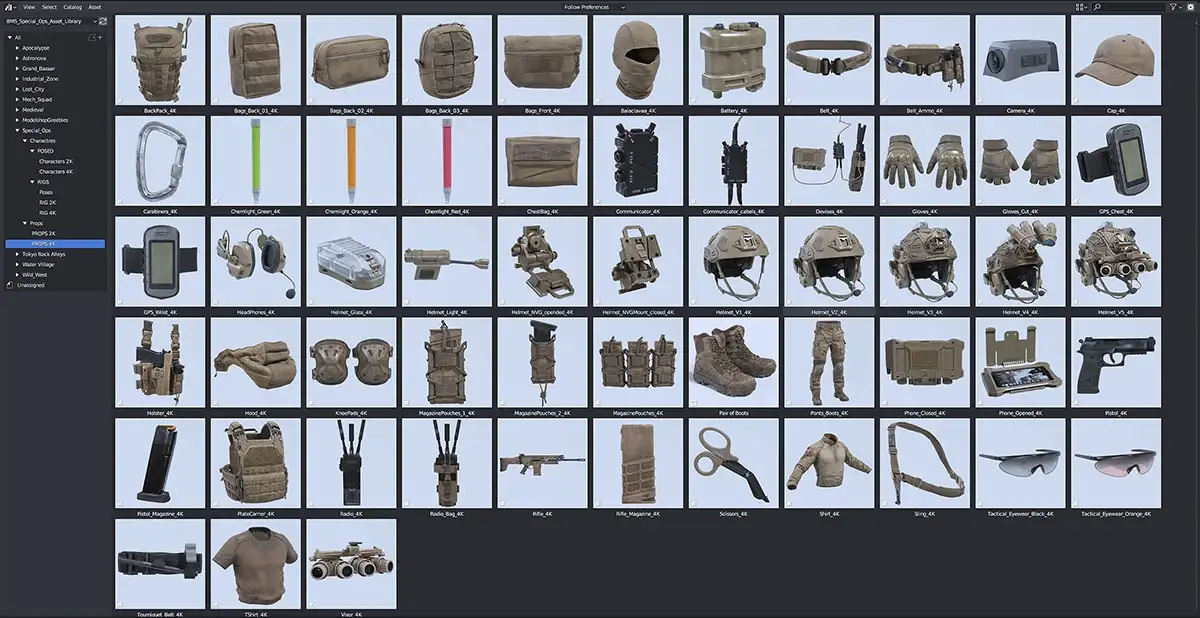 模漾网-特种部队军队角色动作绑定-头盔装备模型-BMS OPS-70.8GB