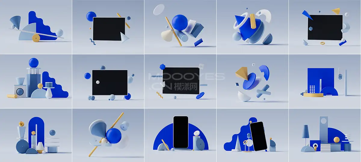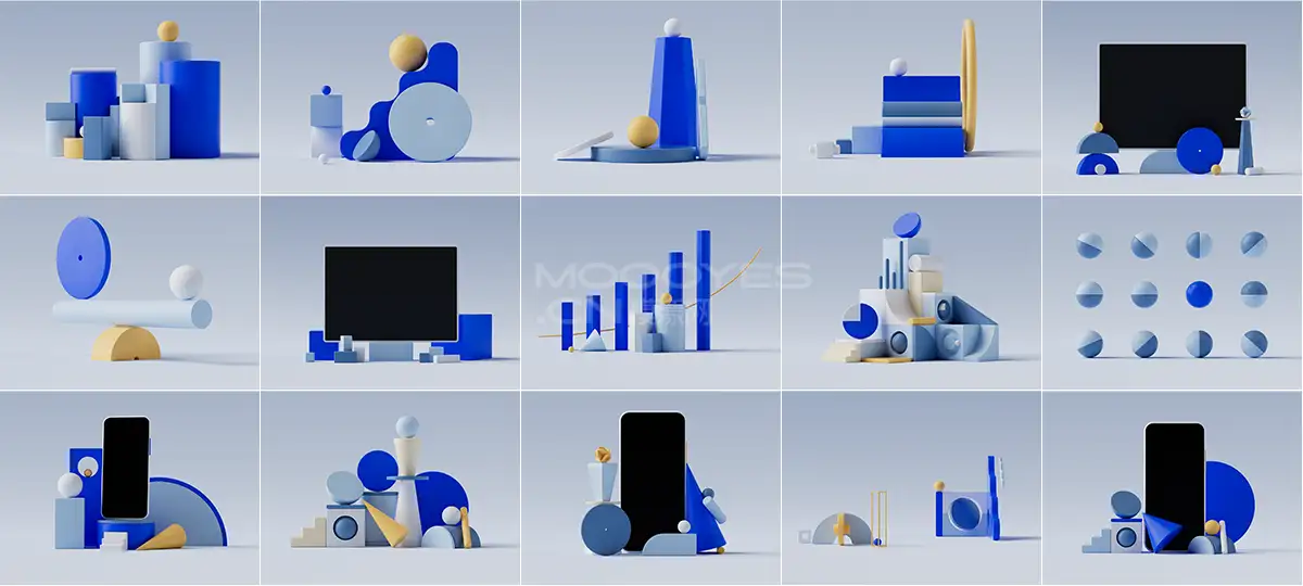 文件包名称:模漾网-40P-几何元素微软风C4D场景-模型合集