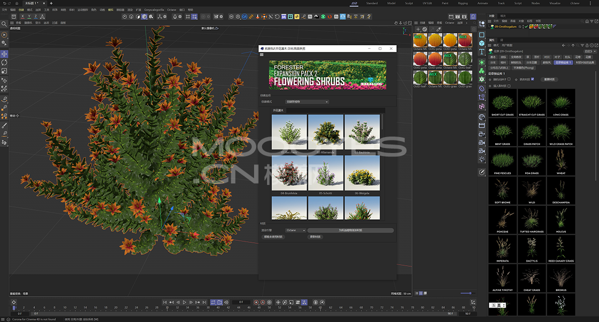 模漾网-植物插件-Forester v1.5.7-资产包-支持C4D R20-2025-中文汉化版