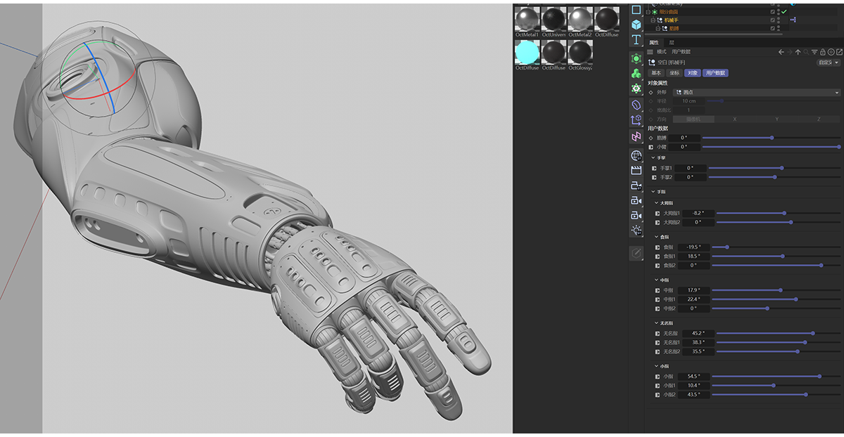 机械手手臂以下:胳膊+手臂+手腕+手指、XPresso绑定控制器、仿生机械手部C4D模型。 文件格式:C4D+FBX