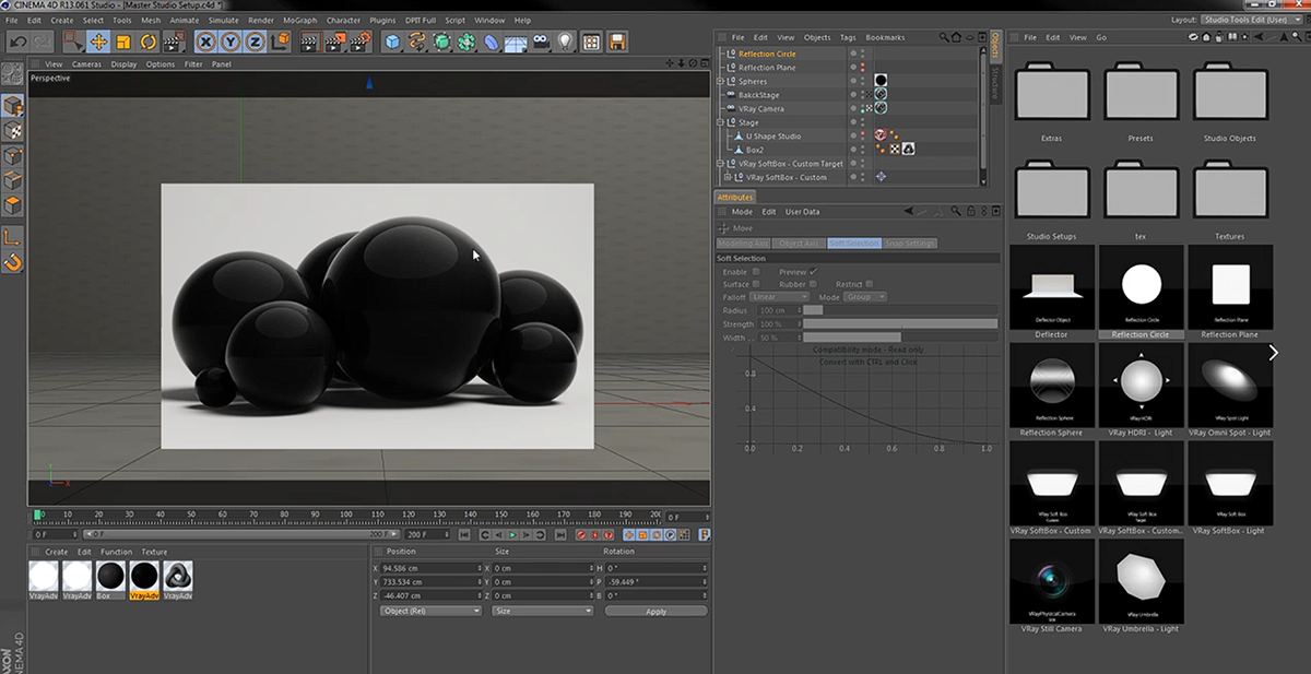 The New VRay Studio Tools PRO has been made again from scratch, simpler and easier to use , ad yet can produce high quality renders in cinema 4d . we are introducing 15 new High dynamic range light textures photographed from real studio lights with different variations and high resolutions ( More than 3000px per texture ) for accurate lighting , reflections and shadows and more realism .