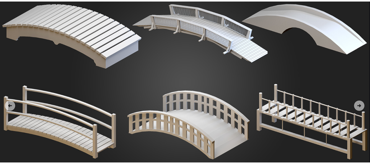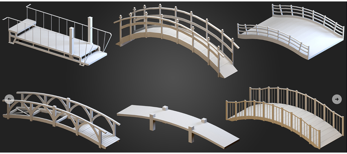 模漾网-64P-拱形桥园林景观小桥桥梁C4D白膜-模型合集