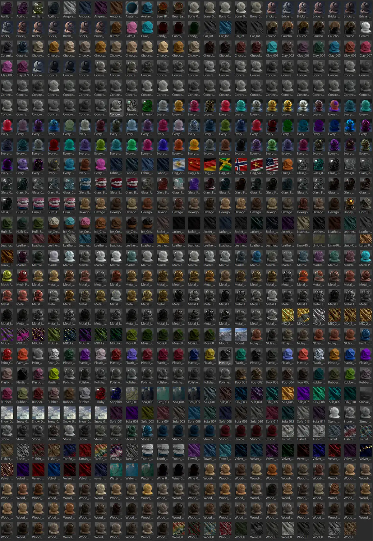 包含:砖块,混凝土,日常,食物,织物布料,皮革,大理石,金属,混合材料,天然粘土,自然,油漆,石头,合成材料,半透明,木材等风格