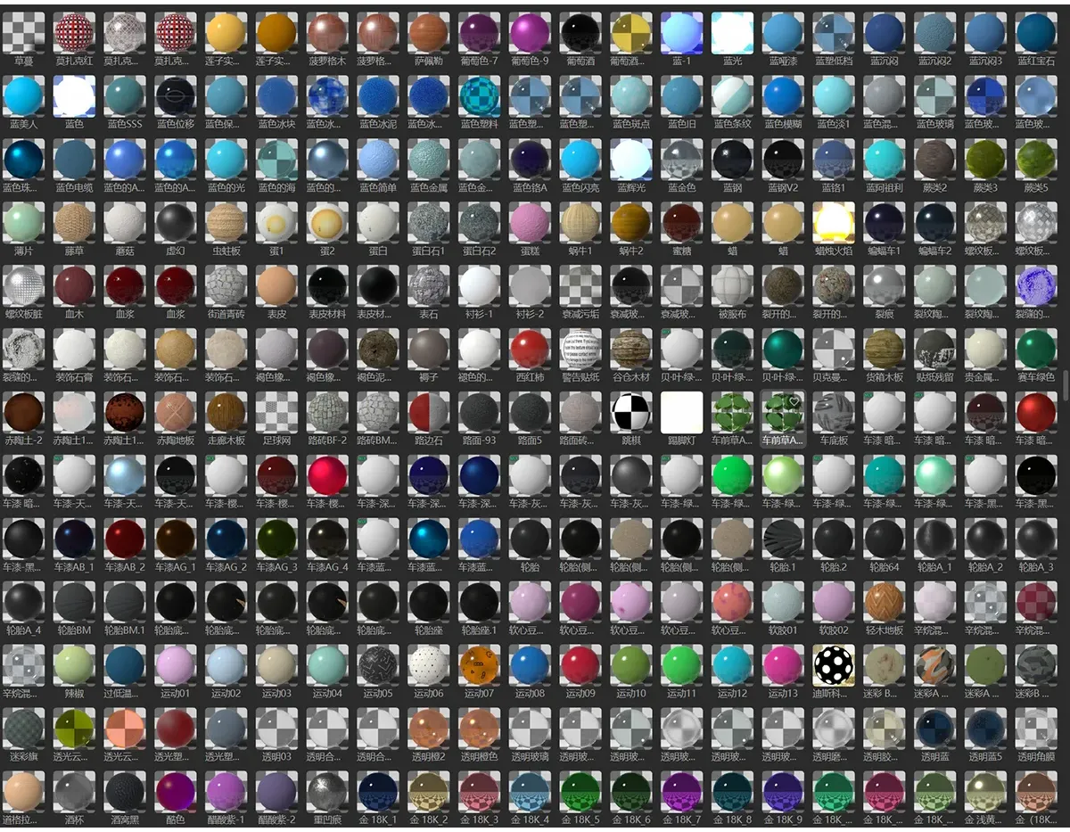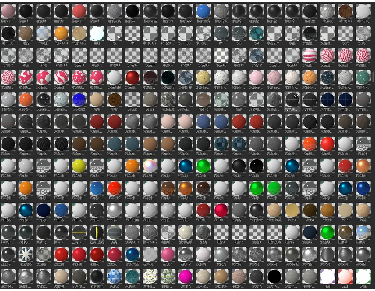 20、汽车材质:专为汽车设计,包含车漆、轮胎、内饰等材质