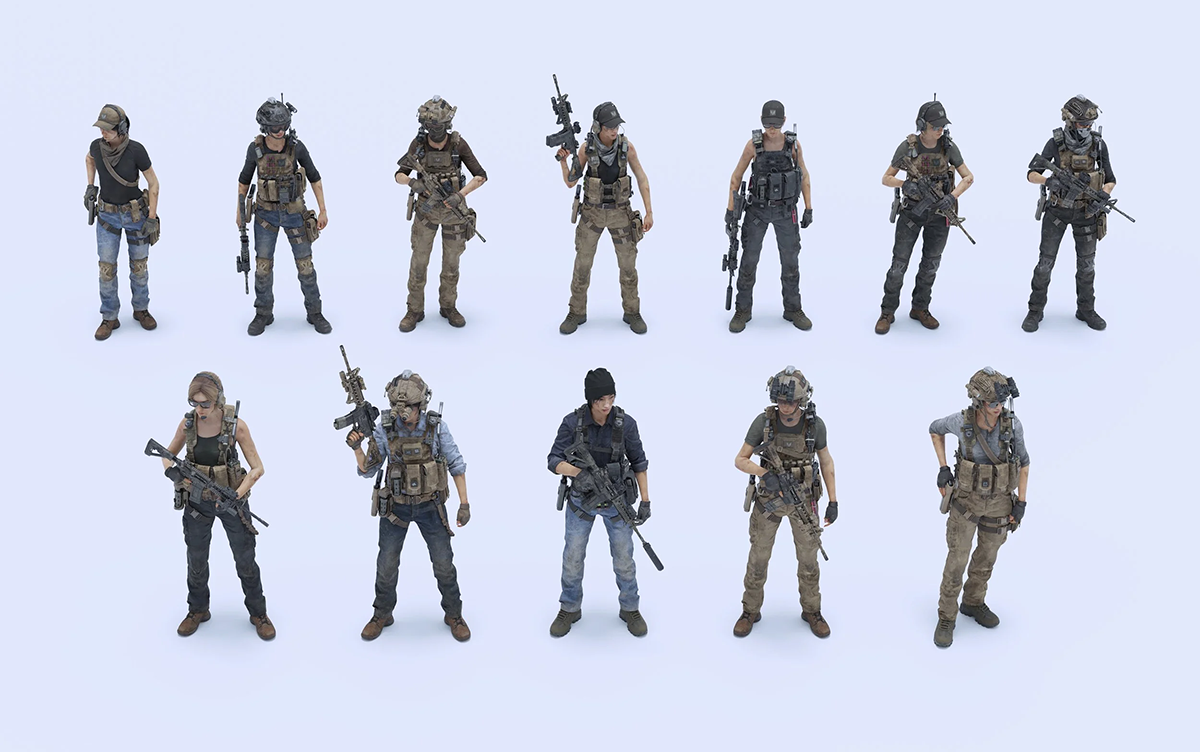 “Shadow Unit”人物角色模型资产包是一套为专业创作者打造的全面解决方案,无论是游戏开发、影视制作还是建筑可视化,都能满足最严苛的品质要求。从精细的面部表情到逼真的装备细节,从灵活的模块化系统到完善的软件兼容性,每一个方面都经过精心设计,确保您能够创建出最具震撼力的特种部队角色。这不仅仅是一套3D模型,更是一套完整的创作工具,让您能够将脑海中的特工世界完美地呈现在屏幕上。