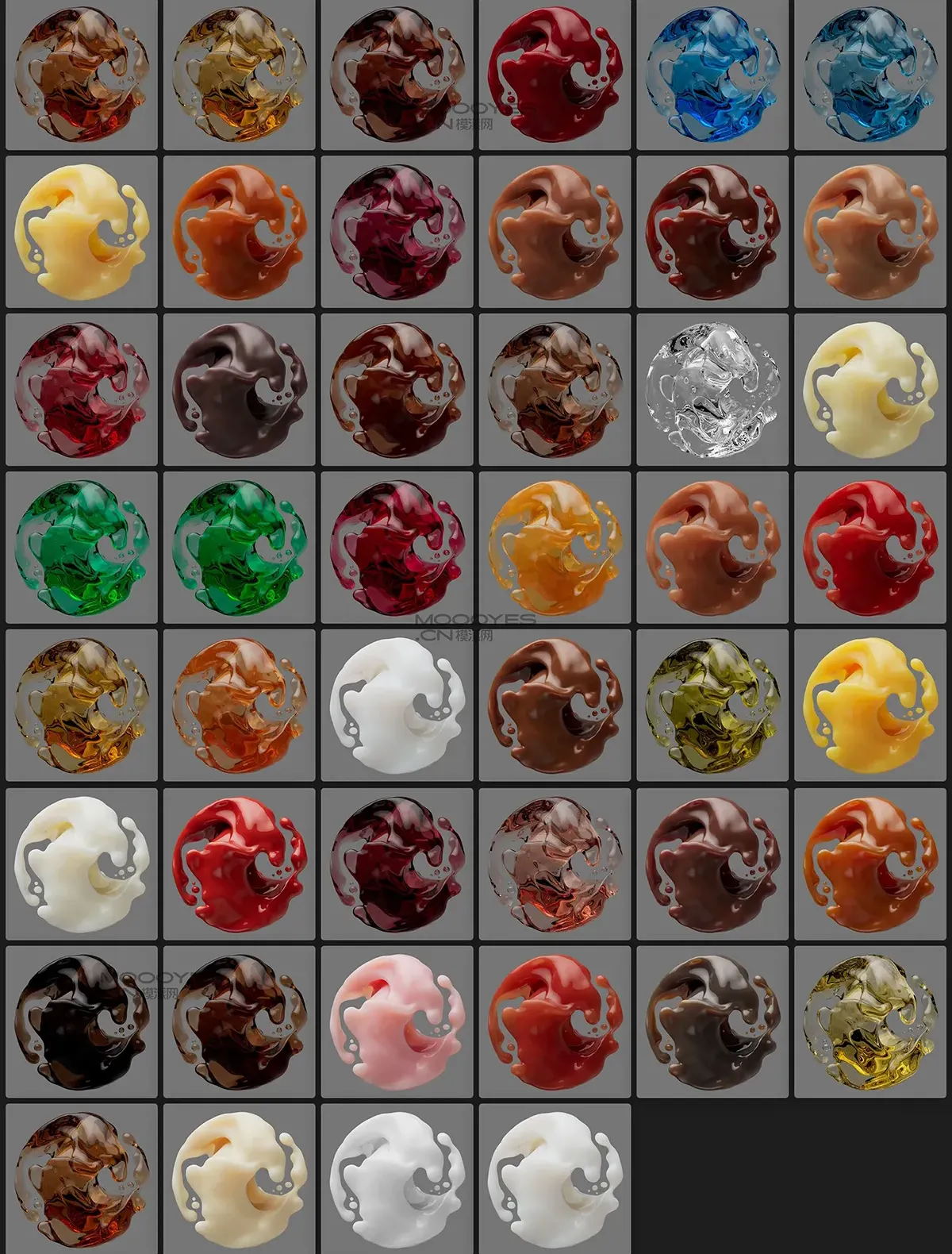 模漾网-46P-GSG Material Liquid流体液体SSS材质预设(Octane版本-Redshift版本-Arnold版本)