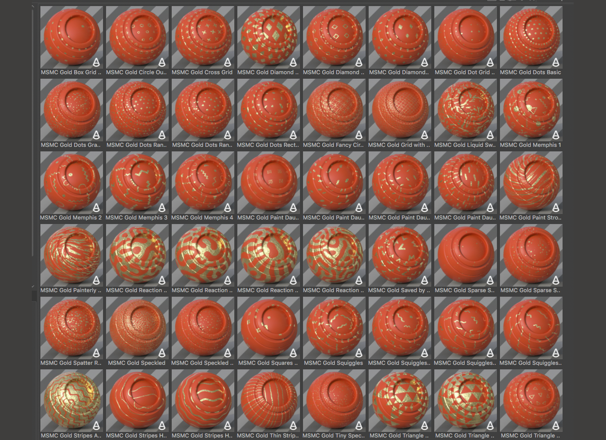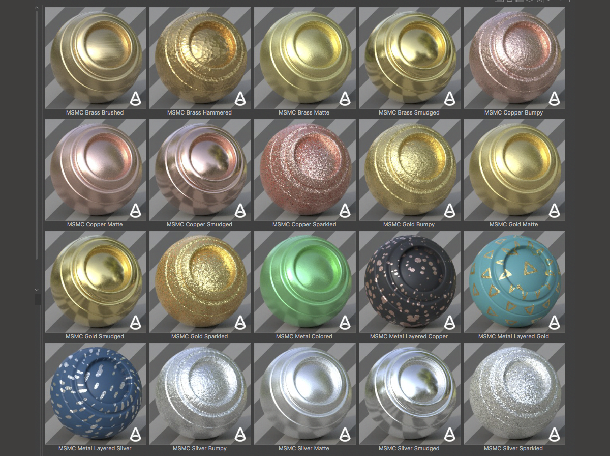 GSG_MSMC_Arnold.lib4d是一套阿诺德渲染器的专用材质球预设。