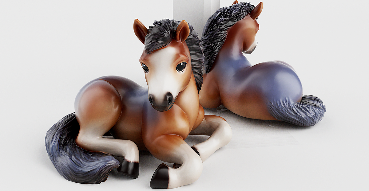 模漾网-1P-卡通马坐姿手办美陈-C4D模型-Octane