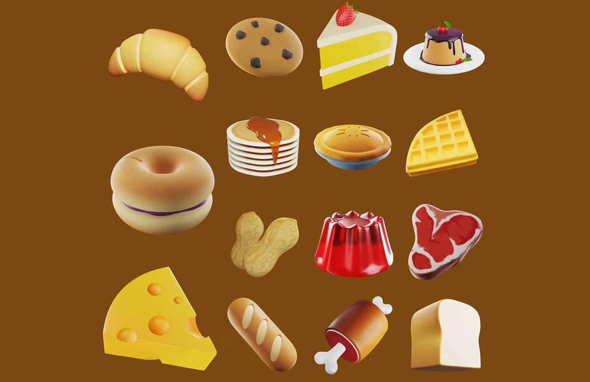 15P食品3D插画C4D、blender模型素材,让您设计与应用登录页面和移动应用程序看起来很棒。100% 可编辑和可扩展。颜色很容易改变。每个插画都有组织,命名且非常易于使用。