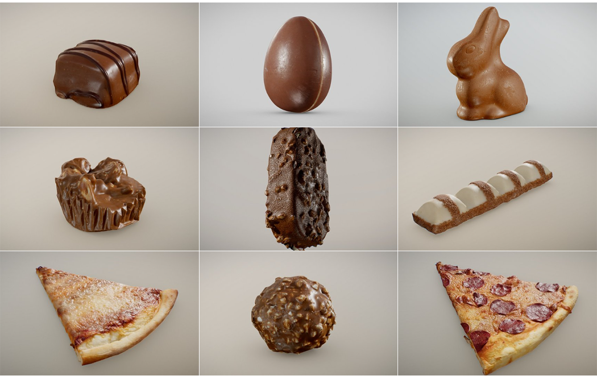 包含:86个水果和食品扫描模型