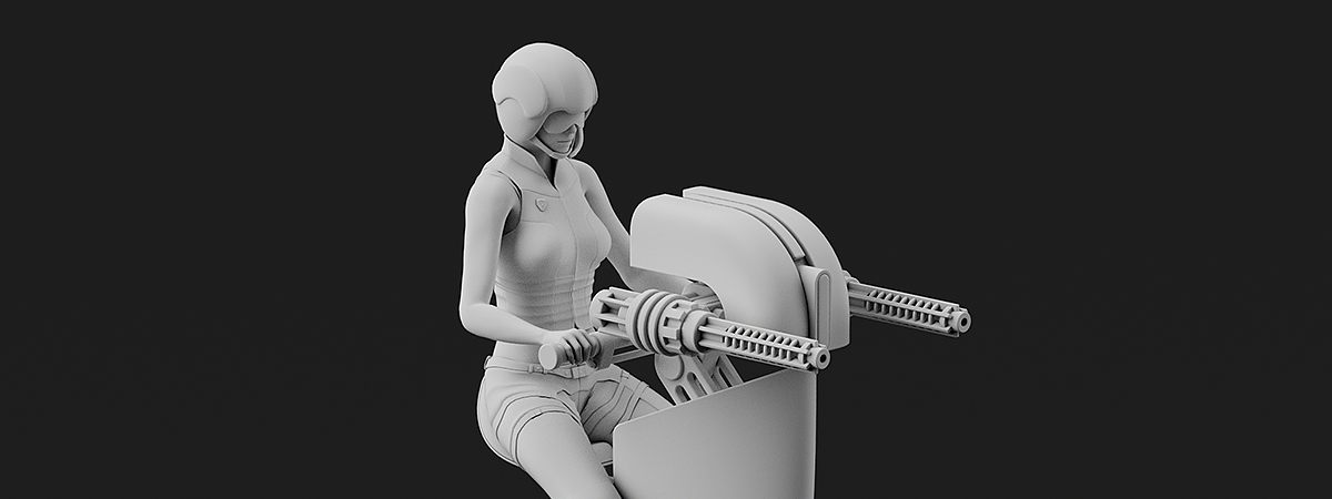 模漾网-1P-飞行器女飞行员驾驶射手模型-Science fiction machine gun female shooter