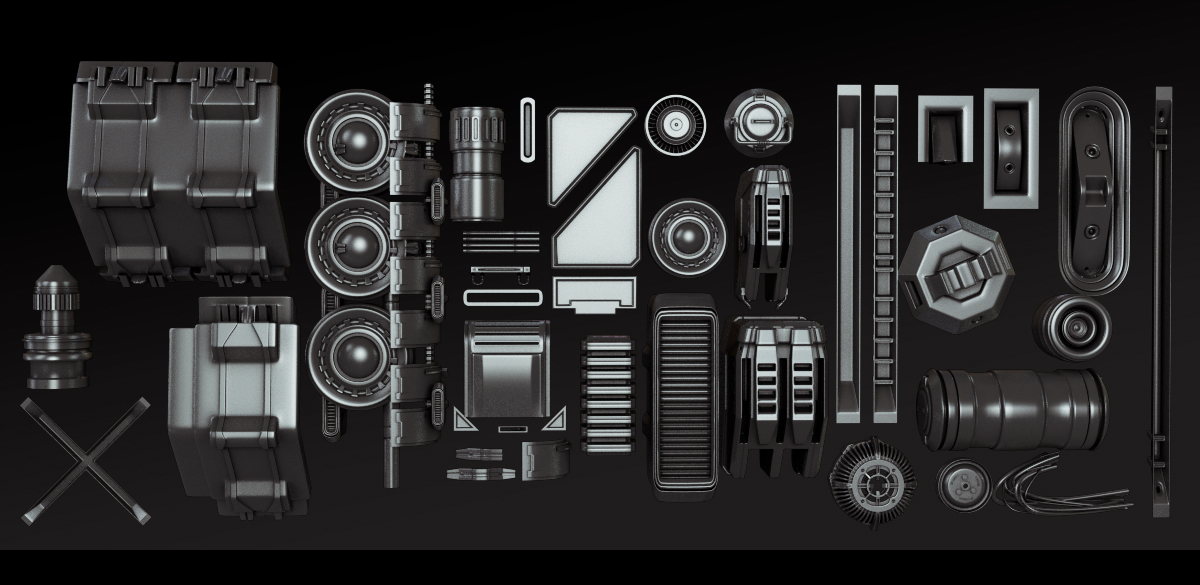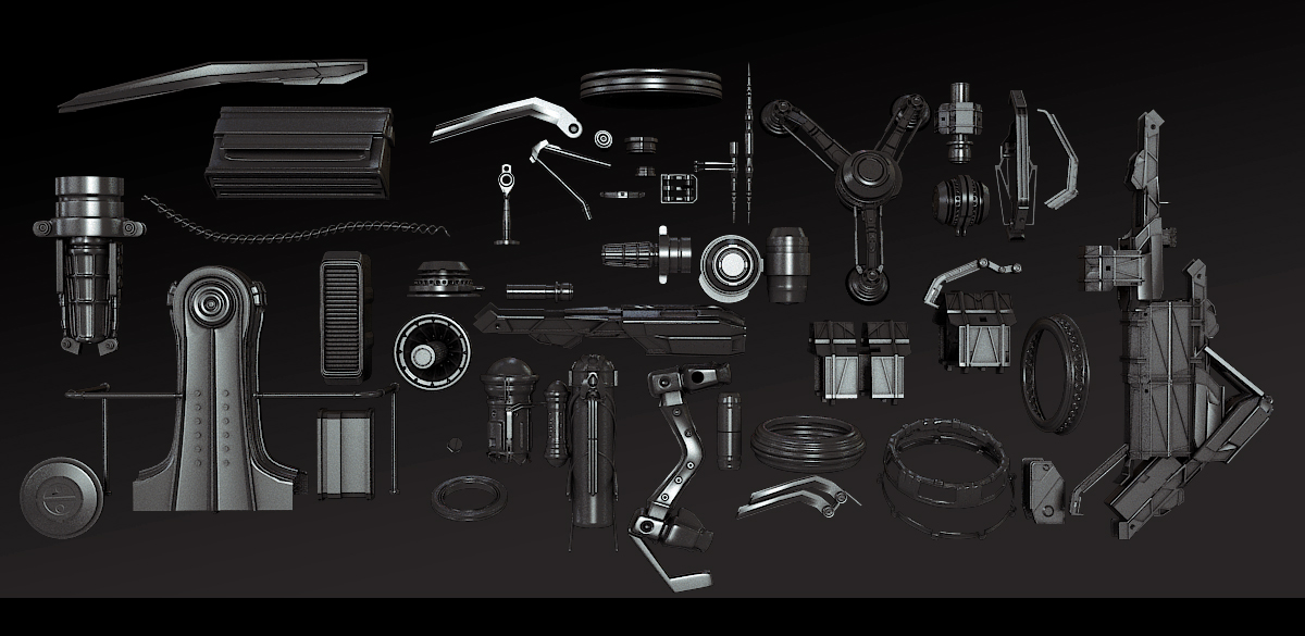 模型资产包含:枪械武器、机械结构零件3d模型合集