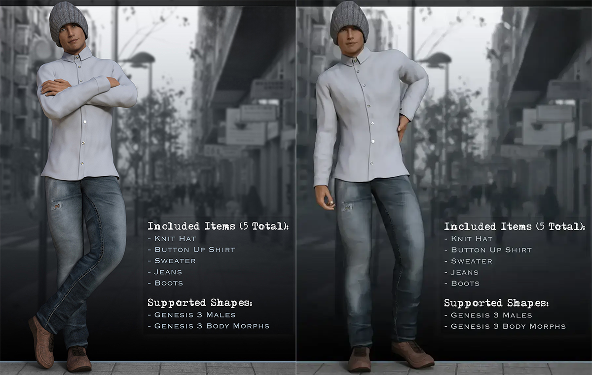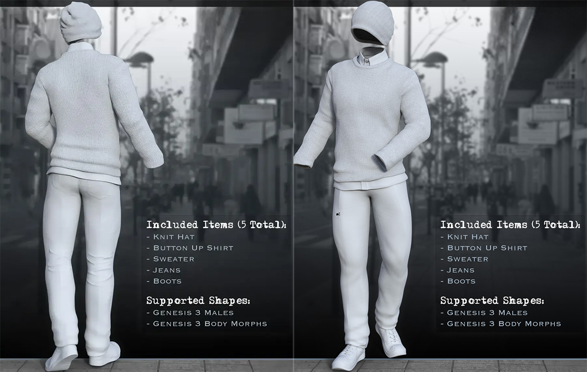 模型资产内容:时尚男款服装模型 (男性骨骼绑定模特)