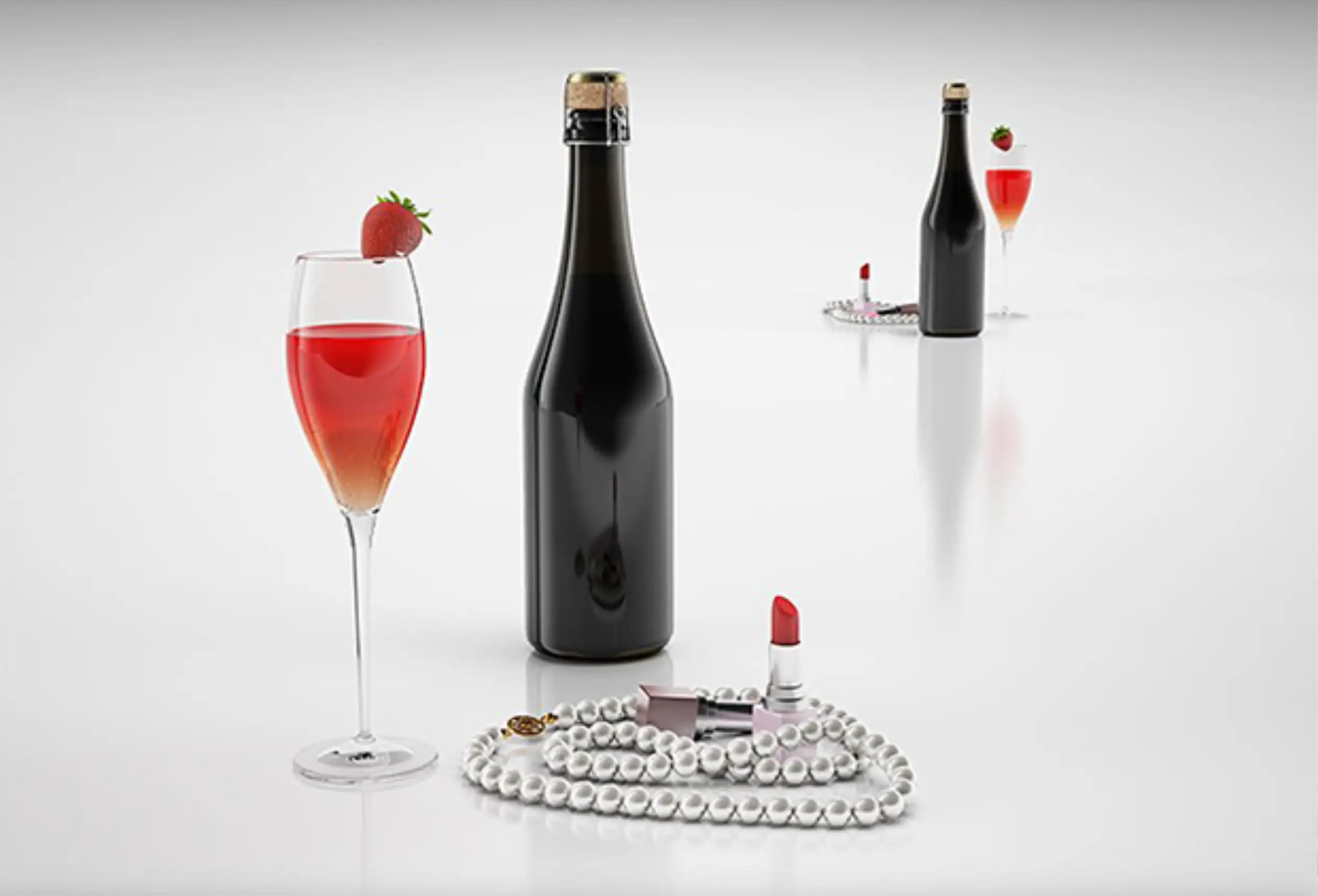 模漾网-1P-酒瓶 香槟杯 珍珠项链 口红