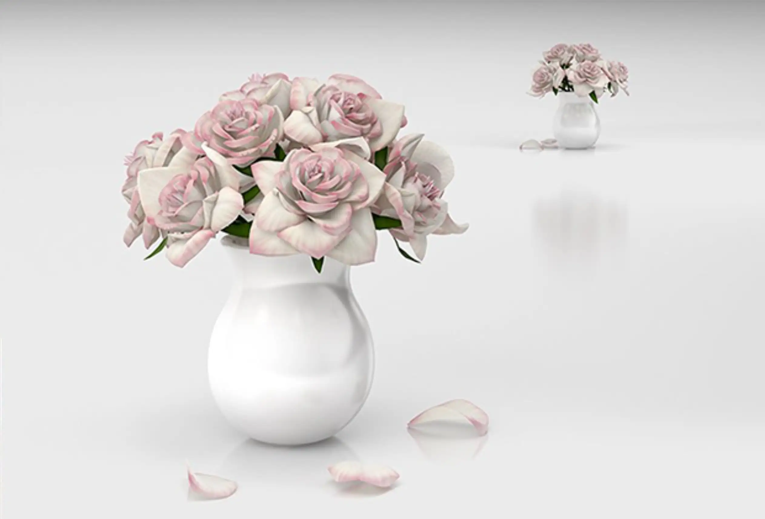 模漾网-1P-粉色玫瑰白色花瓶插花