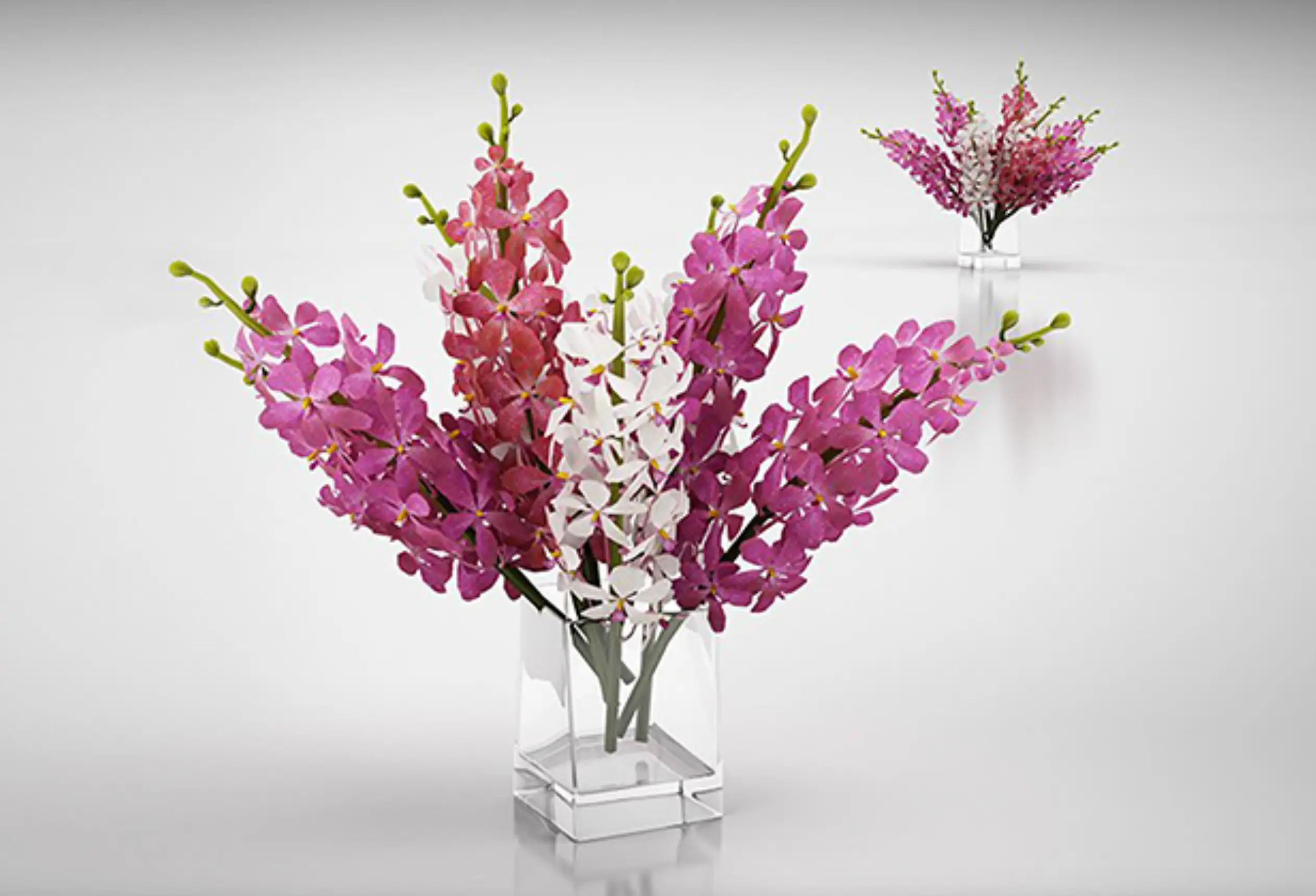 模漾网-1P-粉红色兰花玻璃瓶插花