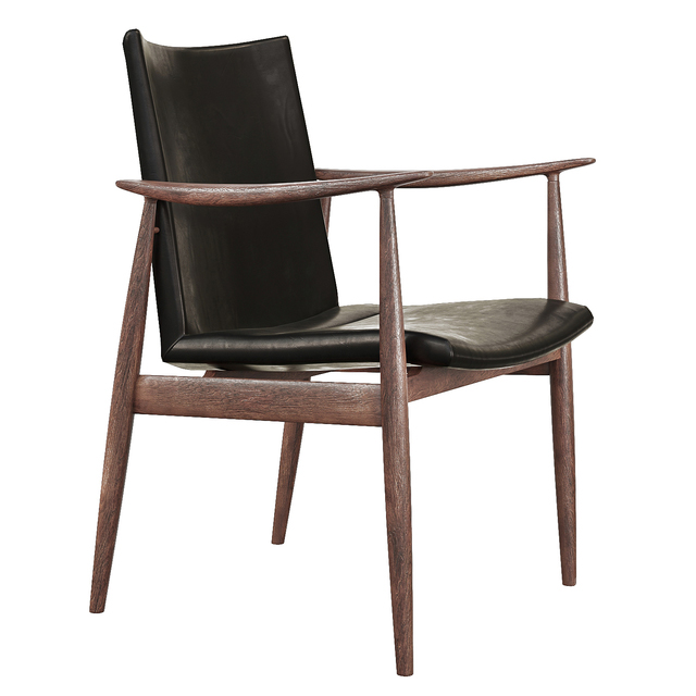 模漾网-1P-工作LOFT风格黑色皮质实木扶手椅