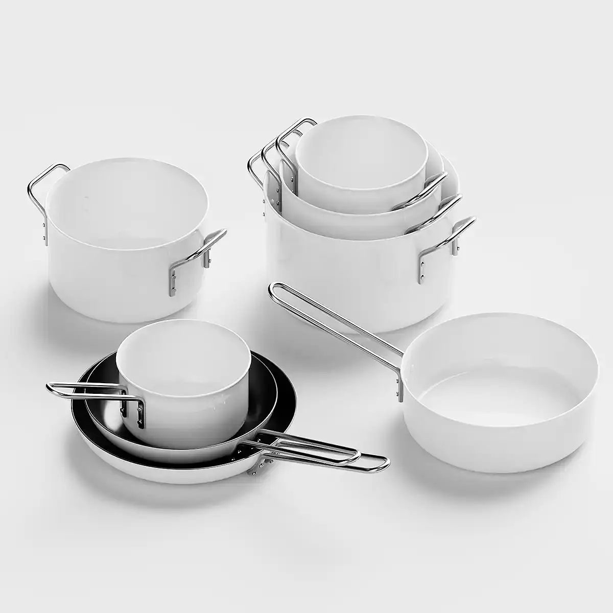 模漾网-1P-白色锅具套装煎炒汤锅-Cookware Set
