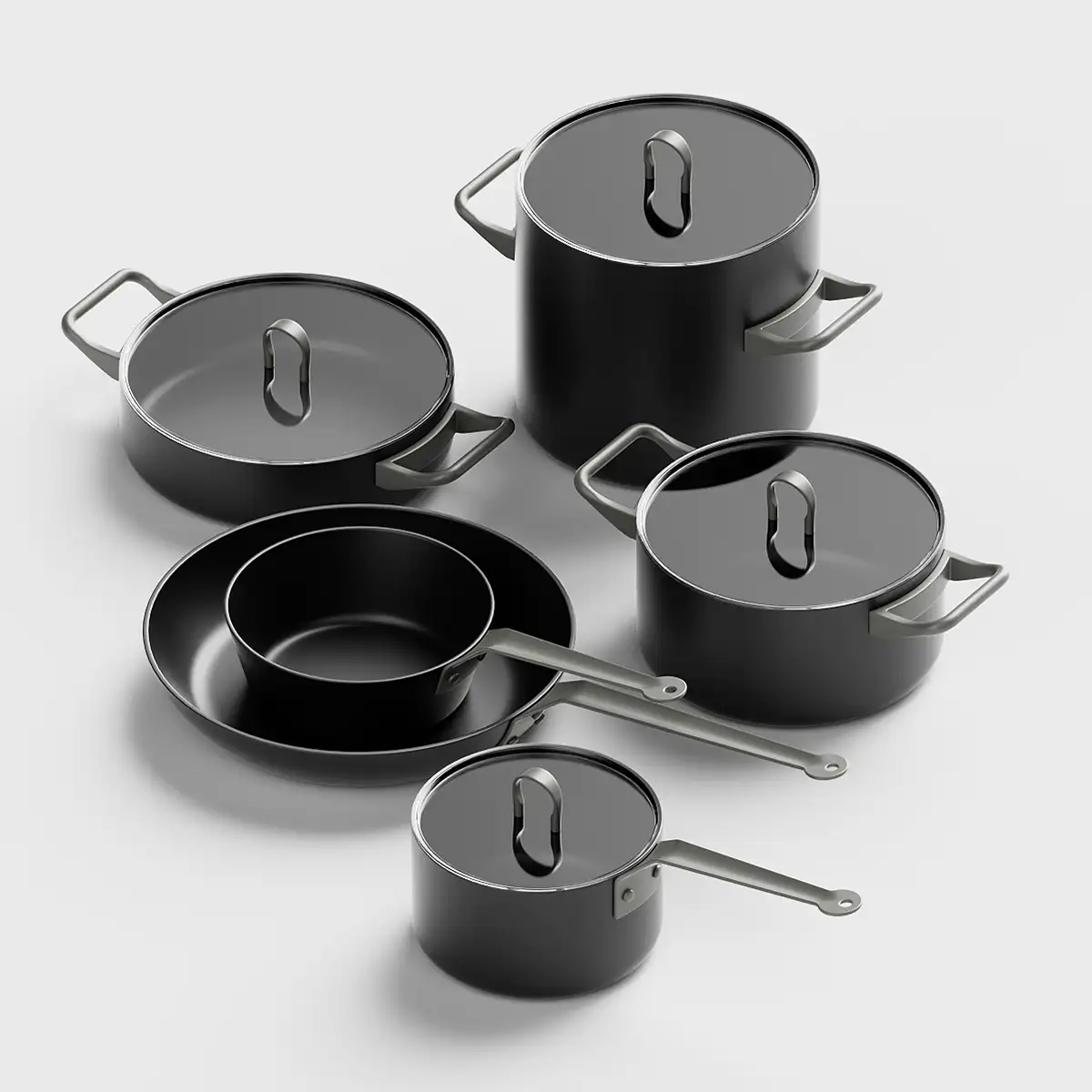 模漾网-1P-黑色锅具套装煎炒汤锅-Cookware Set