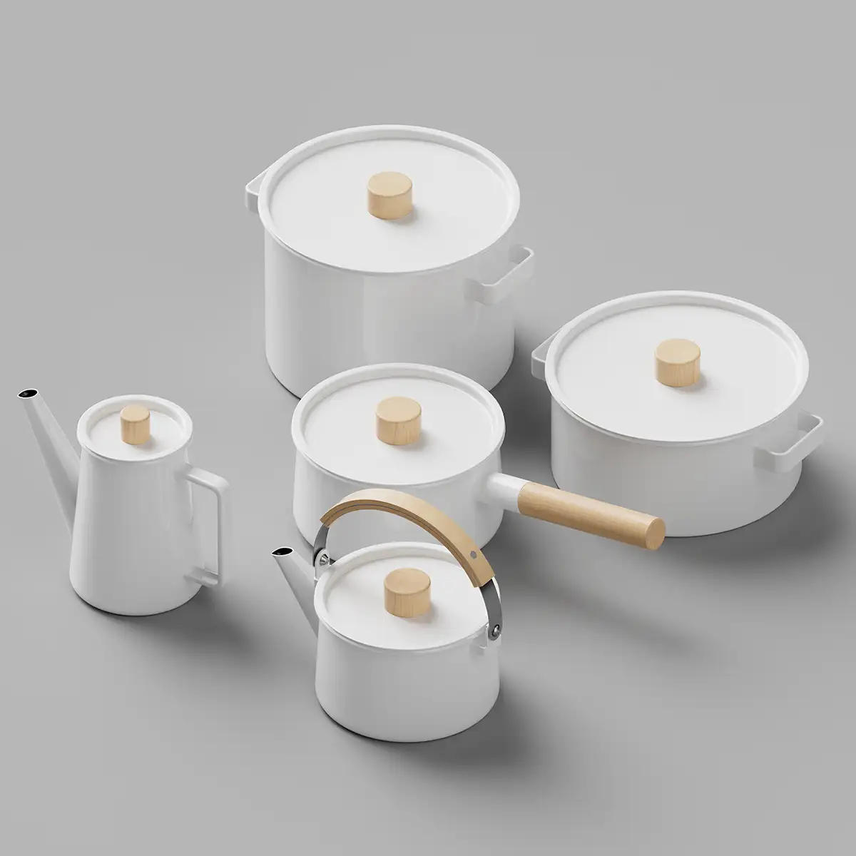 模漾网-1P-白色木柄锅具套装-Cookware Set