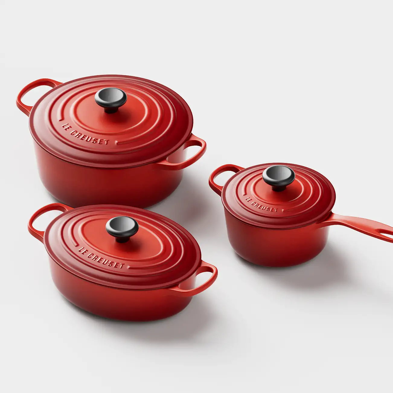 模漾网-1P-红色铸铁锅煎炒汤锅-Cookware Set
