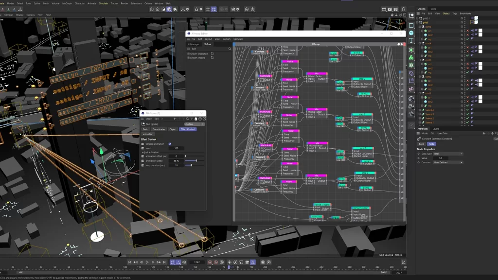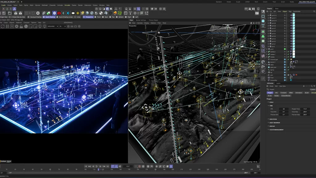 完整保留Cinema 4D三维坐标、投影变形、动态父子绑定等全部关键技术要素,支持与摄像机、灯光、3D对象进行空间融合。无论场景中包含多少动态拍摄镜头或对象动画,都可将HUD面板无缝固定、跟踪、旋转,非常适合用于AR、MR、全息投影、虚拟影院等高端交互场景。可以结合C4D的运动跟踪和动力学系统,实现HUD元素自动随动、反馈或者与真实场景间数据虚实结合表现,拓展无穷应用可能。