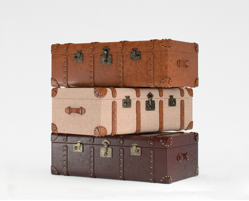 模漾网-3P-红色米色深棕色方形复古皮箱-模型