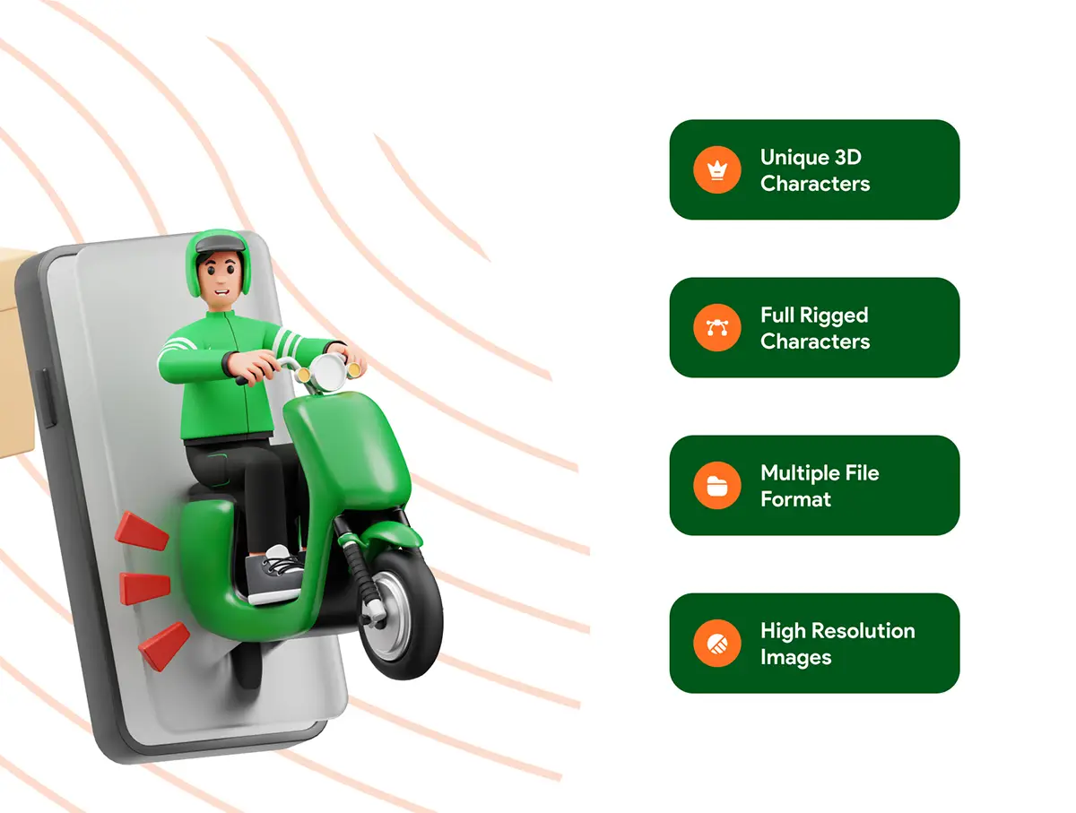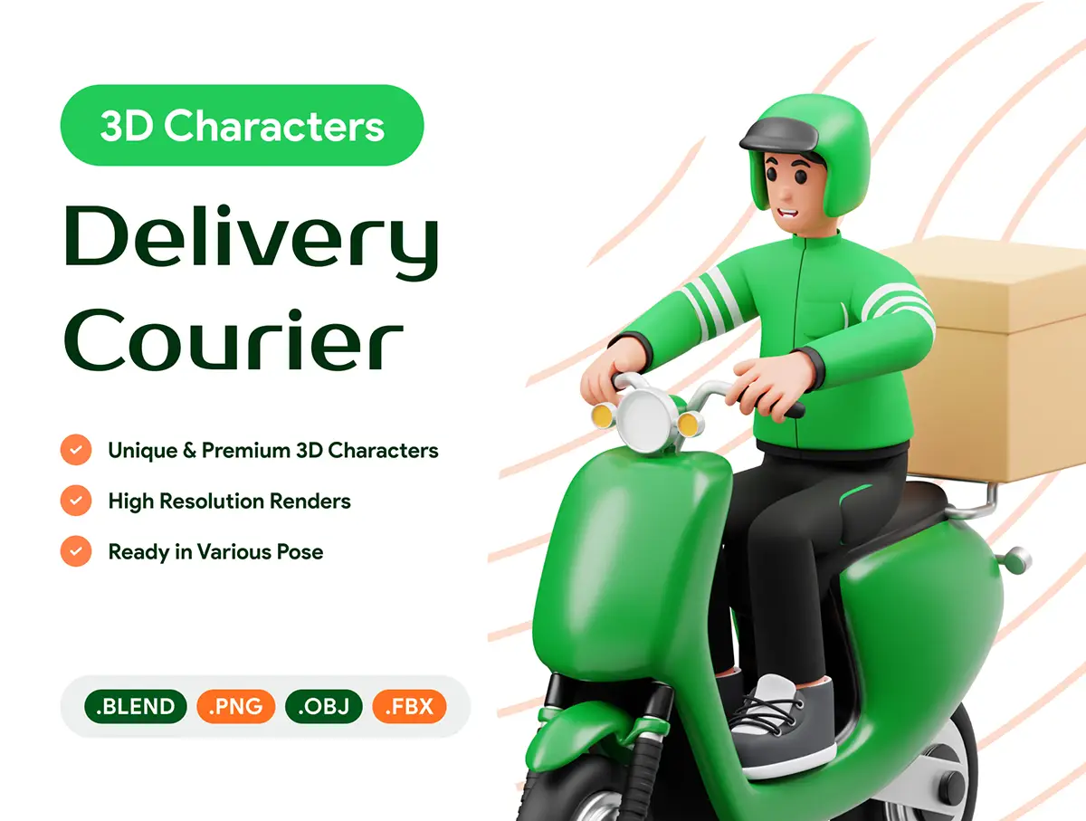 模漾网-11P-人物卡通快递员角色场景-已骨骼绑定-C4D模型
