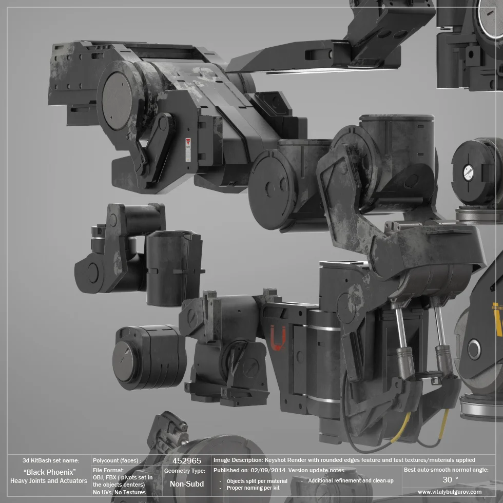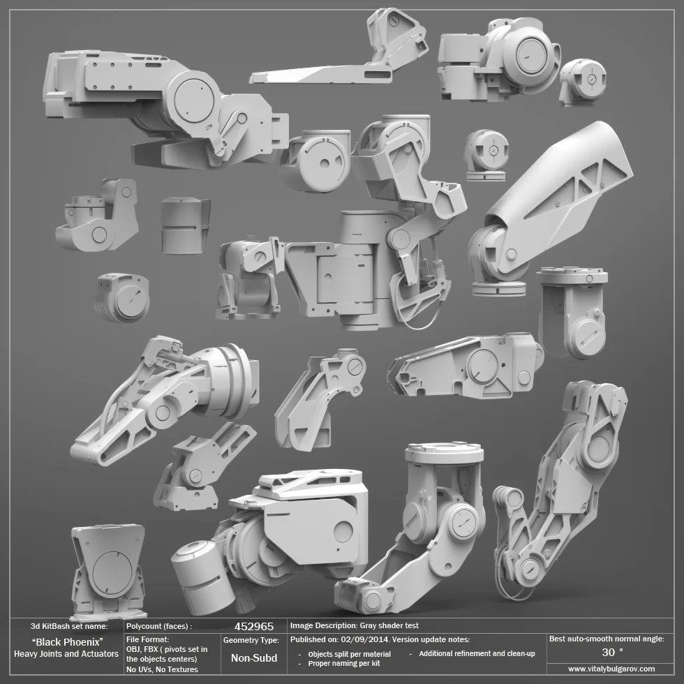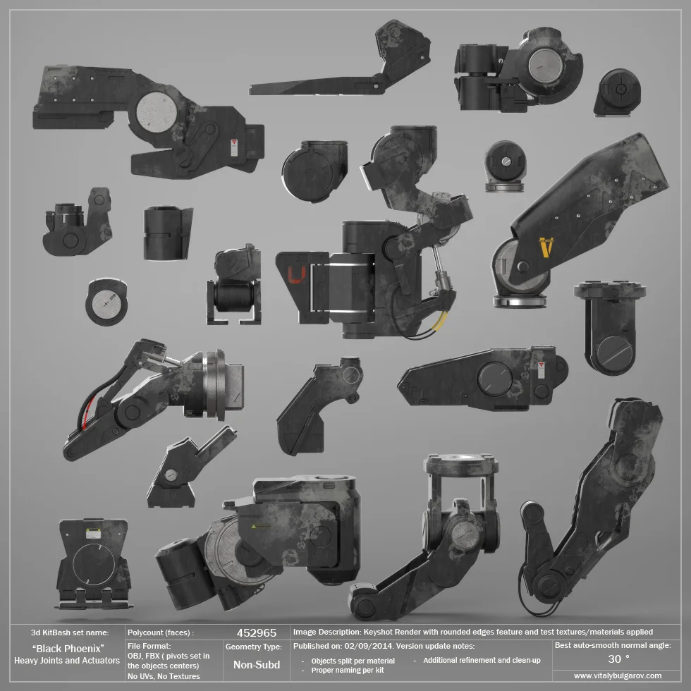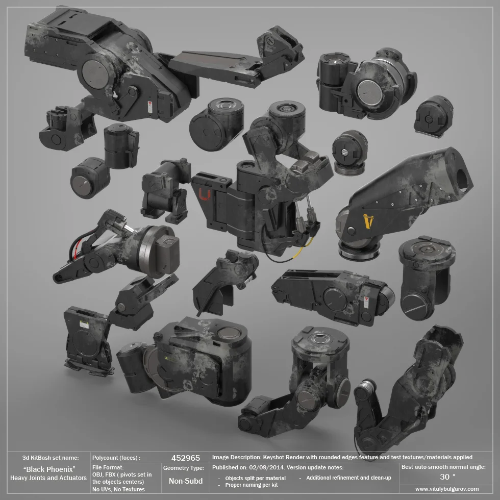 重型接头和执行器模型,可重复使用的机械接头和执行器非常适合加快机器人、重型机械、科幻军用车辆等硬表面设计的构思过程。