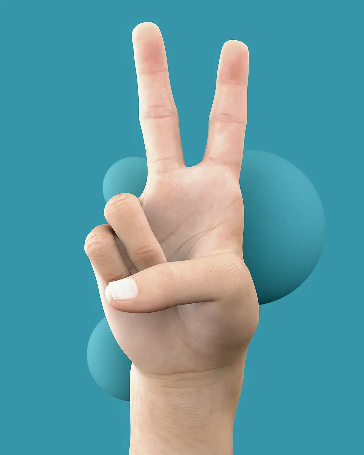 模漾网-1P-蓝色背景V手势手模型-Octane-Got it-C4D工程