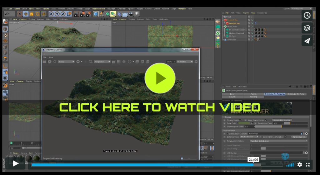 Forester for Cinema 4D ships with 4 modules, Forester Trees, an advanced tree generator, MultiFlora, an advanced plant/grass generator, MultiCloner, an advanced scattering/distribution tool, and Forester Rock, a high detail rock generator.