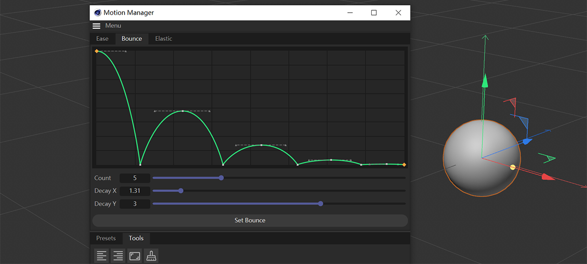 允许您立即为选定关键帧之间的弹跳运动生成关键帧。