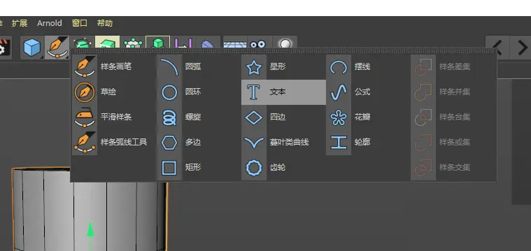 然后,在样条面板中,创建一个文本对象;
