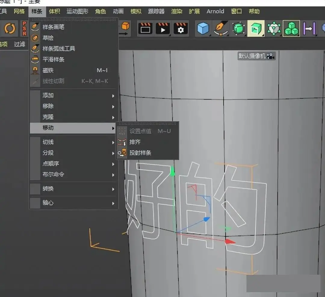 在菜单栏中再点:样条—移动—投射样条